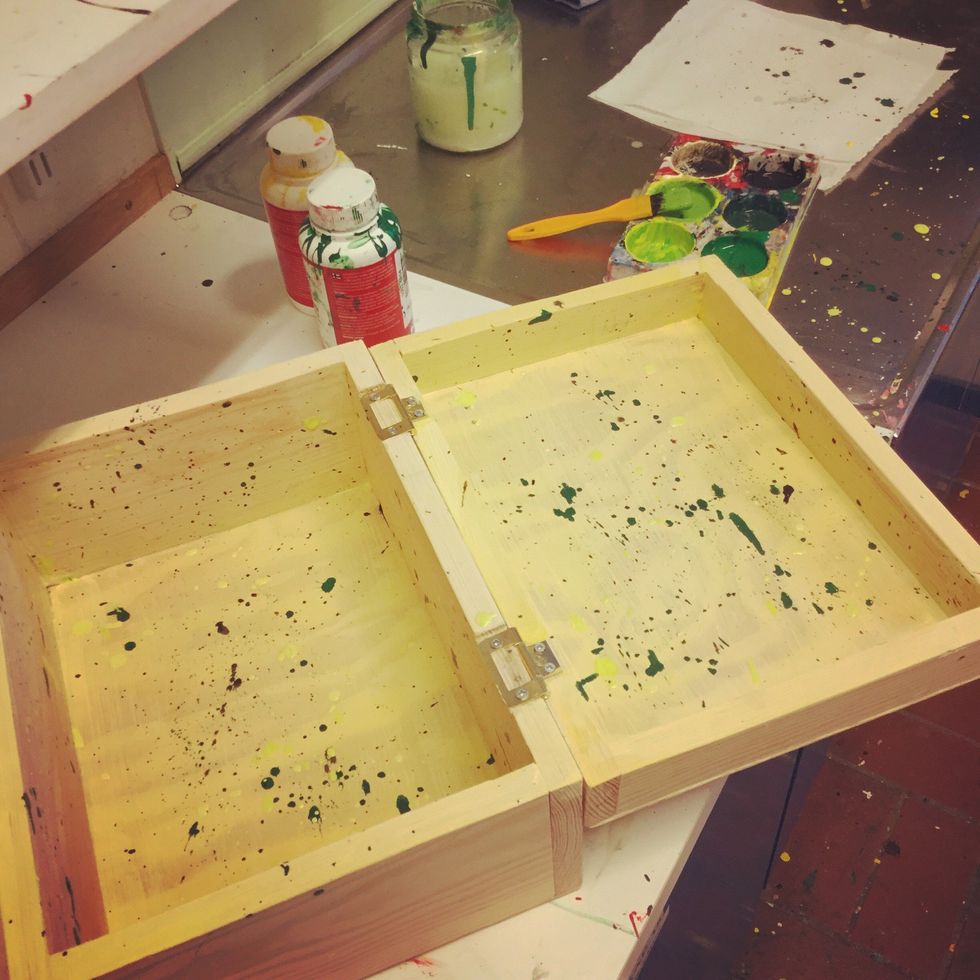 Skruva dit locket och sedan är det dags att dekorera. Kanske vill du stänkmåla inuti din låda? Måla sedan utsidan, och eller dekorera enligt din skiss.