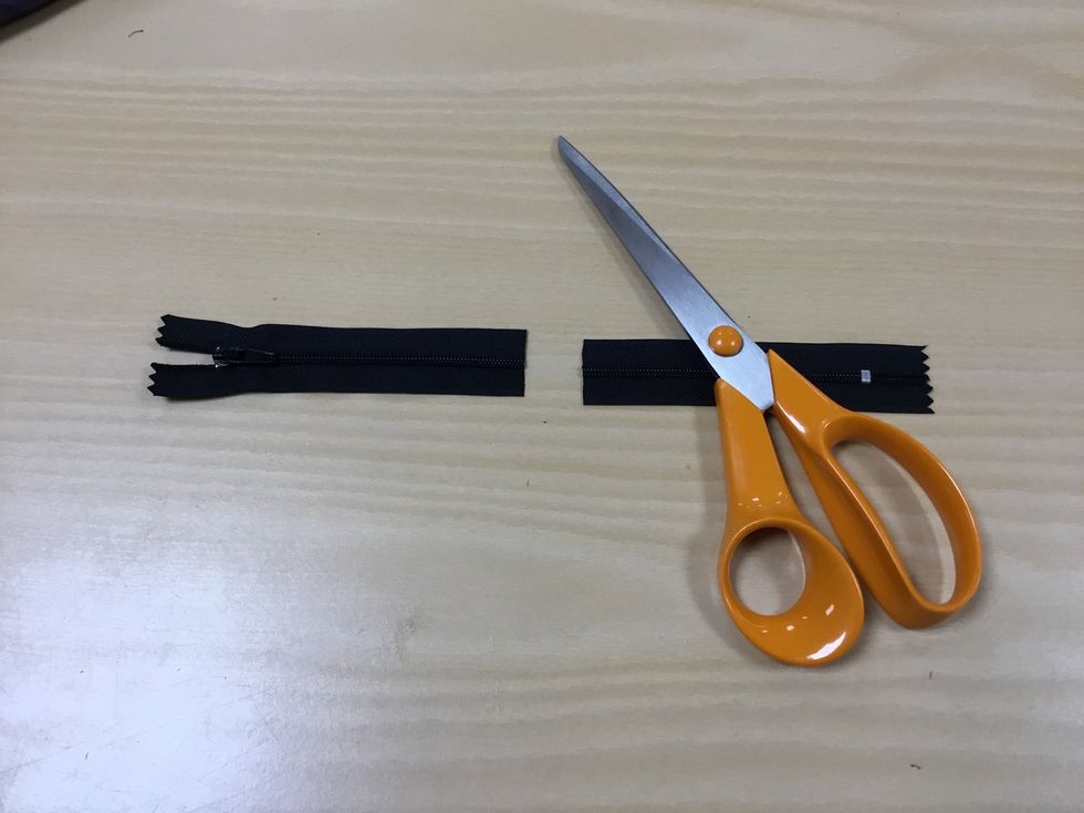 Tvärnåla fast den ena halvcirkeln brevid blixtlåset.
