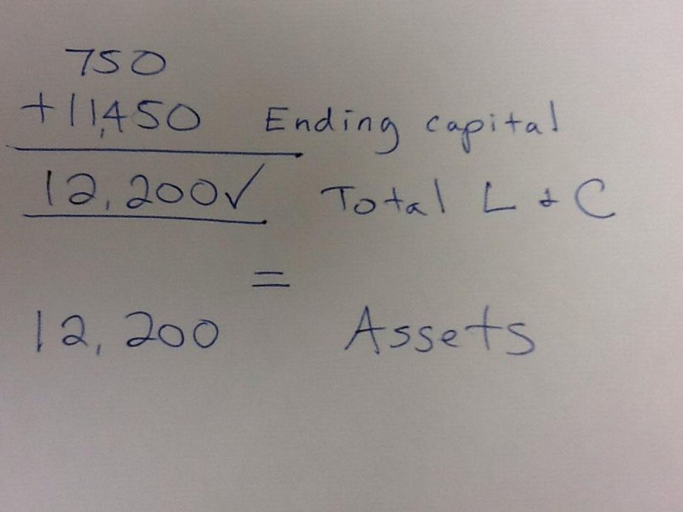 So Total Liabilities + Cap = 12,200. And 12,200 is the total of all assets. So does A = L + C?