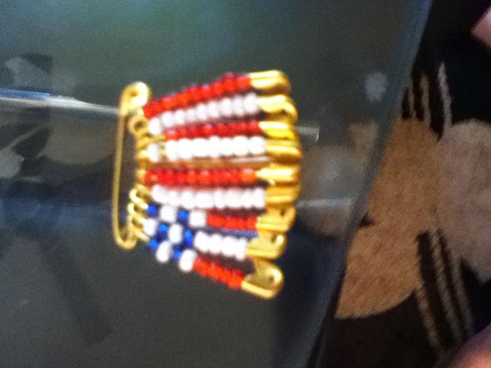 Get red,white & blue beadsPut them in groupsThen just copy the picturesThen do three white onesThen do three red onesPut them in order then put them on a pin 🇺🇸