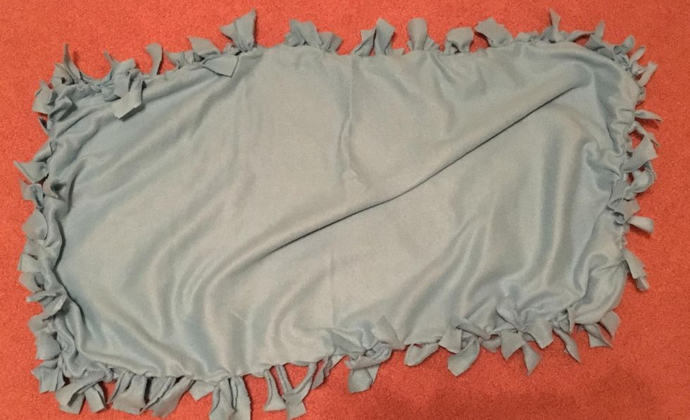 After you tie every other knot all the way around the blanket, go around and tie the ones you skipped.