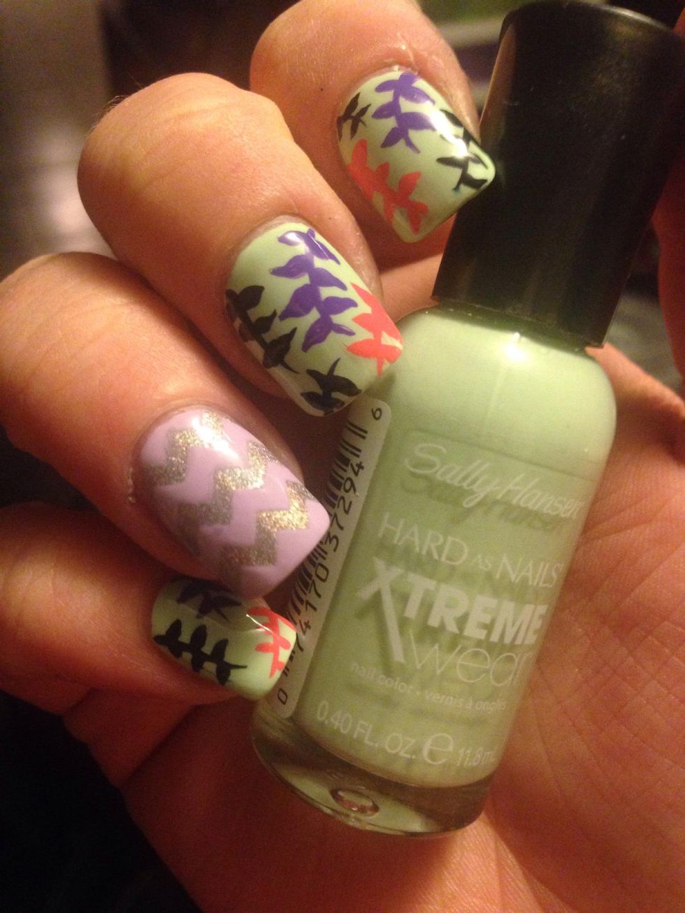Here is the completed look with all colors. On the accent nail I used chevron nail vinyls. You can find these online.