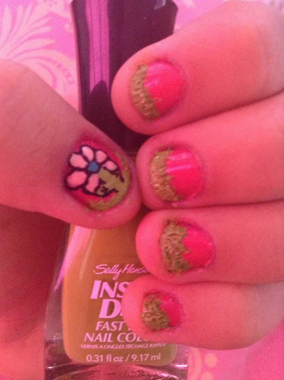 Now with your pin or dotting tool make a thin French tip at the tip of your nail and with something sharp drag it up as if your making grass ( witch you are )