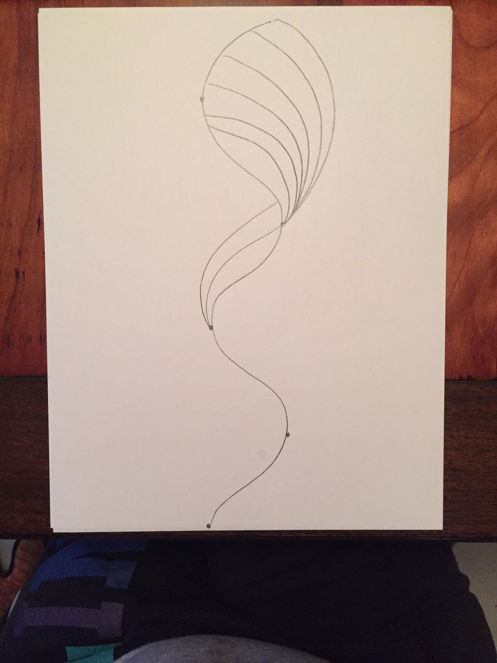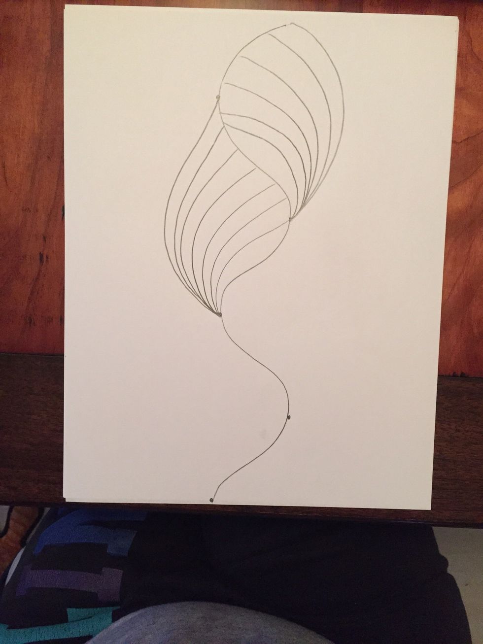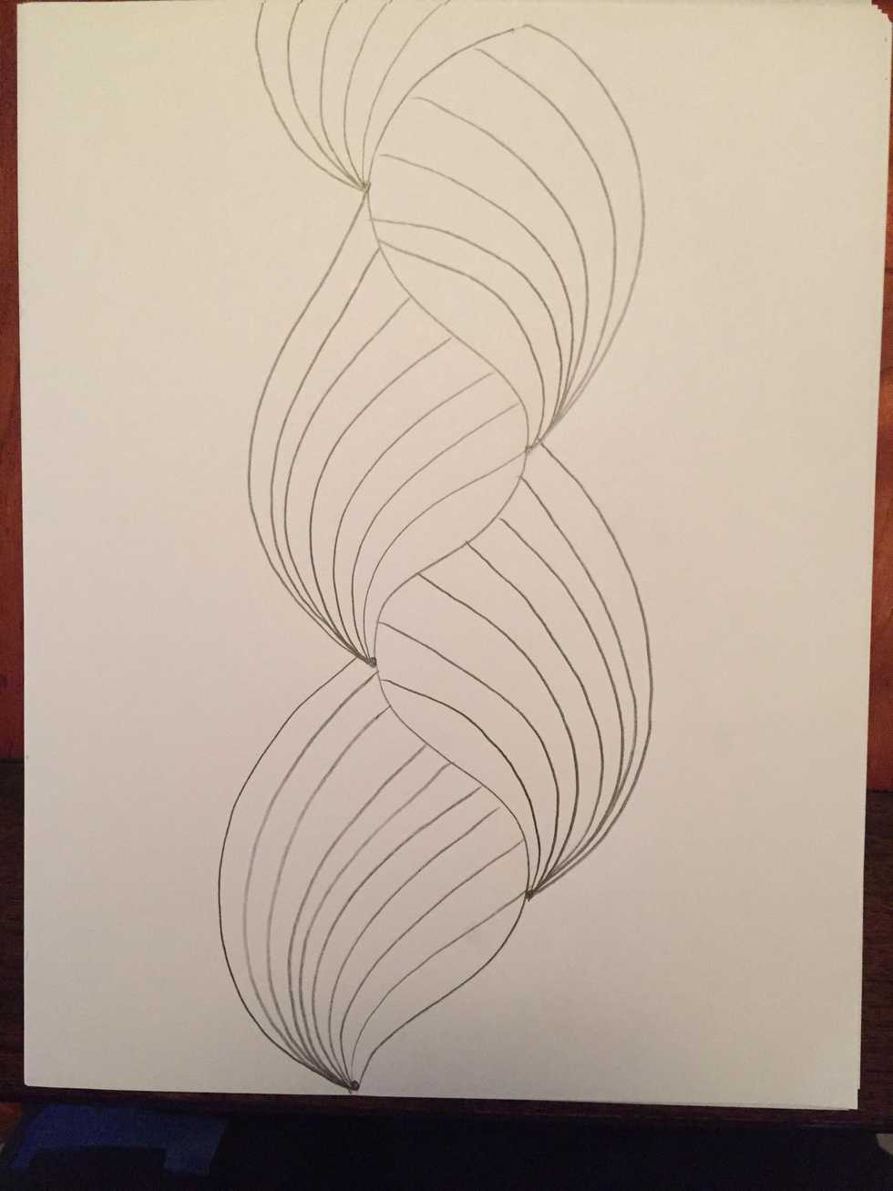 Draw one wavy line down the center of your paper (hold your paper portrait-longways up and down). Your line needs to have at least 4 bumps. See photo.