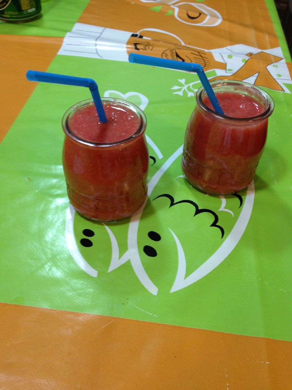 Trituramos y añadimos dos sobrecitos de sacarina o azucar, al gusto. Refrigeramos en la nevera 20 minutos.