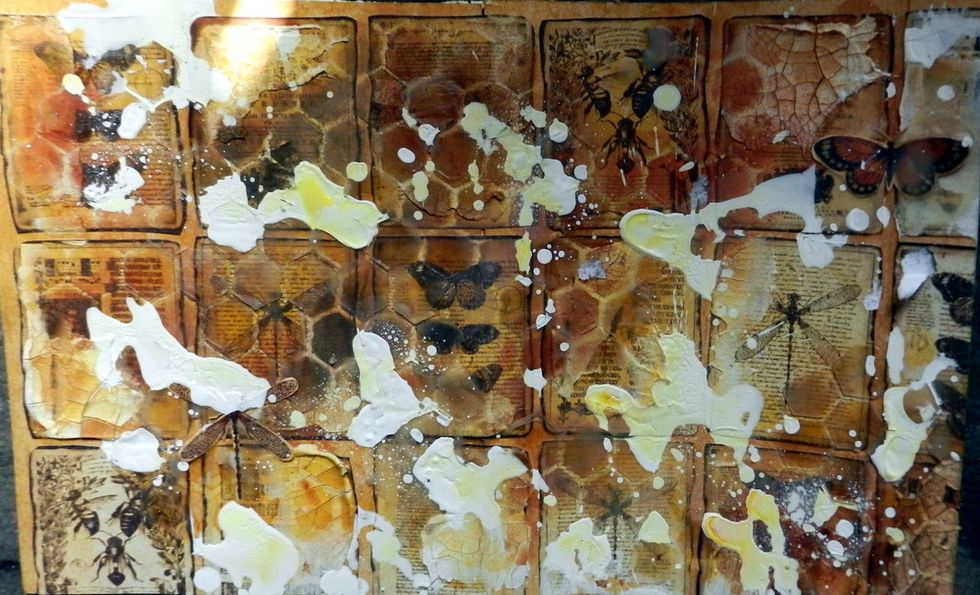Using a black pen,draw the outline of the hive. Apply more Beeswax and you can add glass beads.