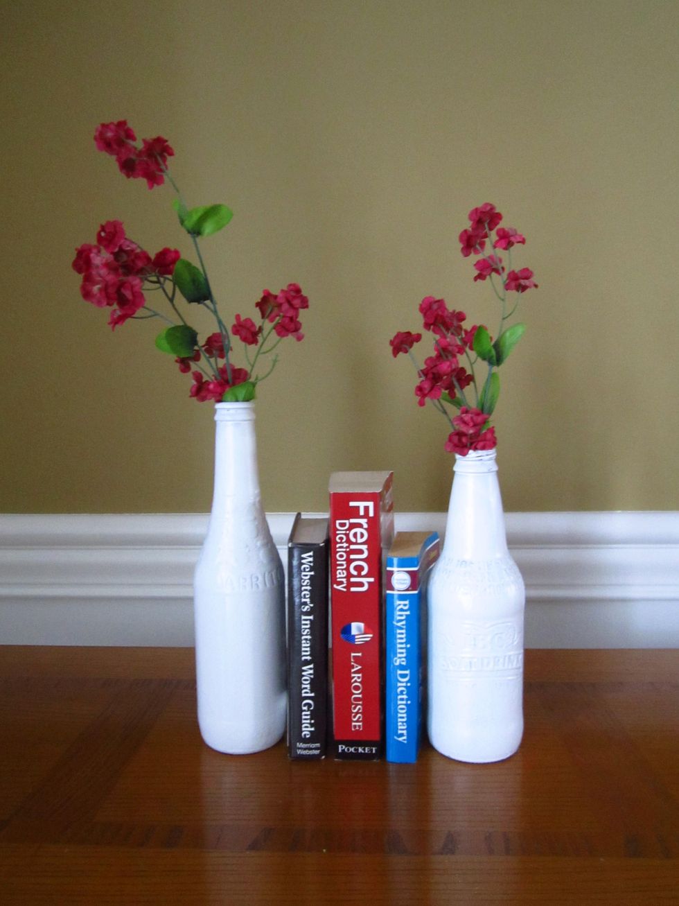 I recommend spray painting different bottle sizes, and experimenting with what you like the best. I really liked this look, with one bottle bigger, and the other smaller.