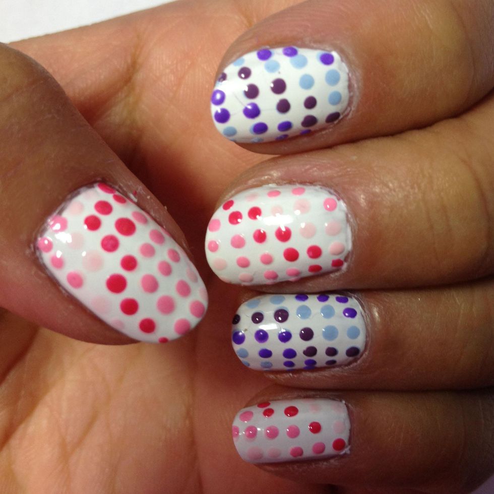 Fill in your nails with dots. Ensure that it is parallel and evenly spaced. Try to keep the dots around the same size.