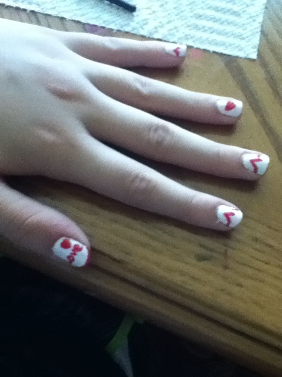 Apply white all over nails..