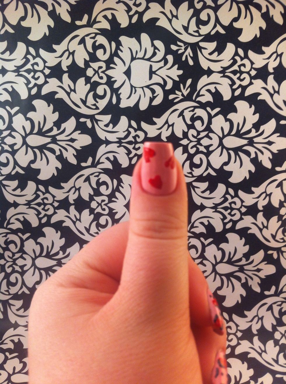 Now take your red striper and connect the dots in a triangular shape to create the hearts.