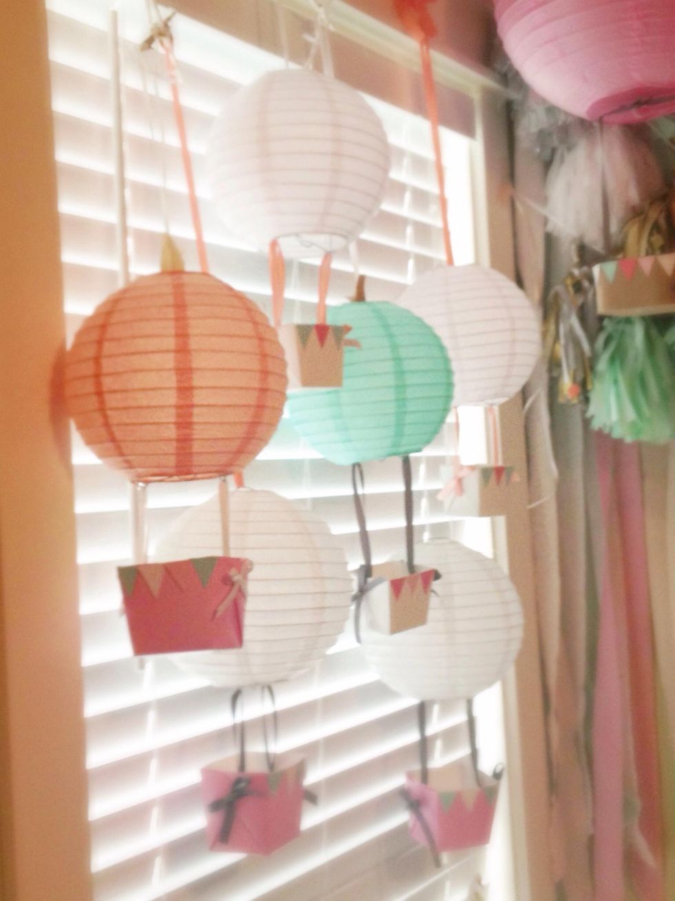 Hot glued candy sticks to the bottom of the box & wrapped with pipe clears to attach the lantern. After several burnt fingers, frazzled nerves, & ripped lanterns, I decided the rest would hang instead