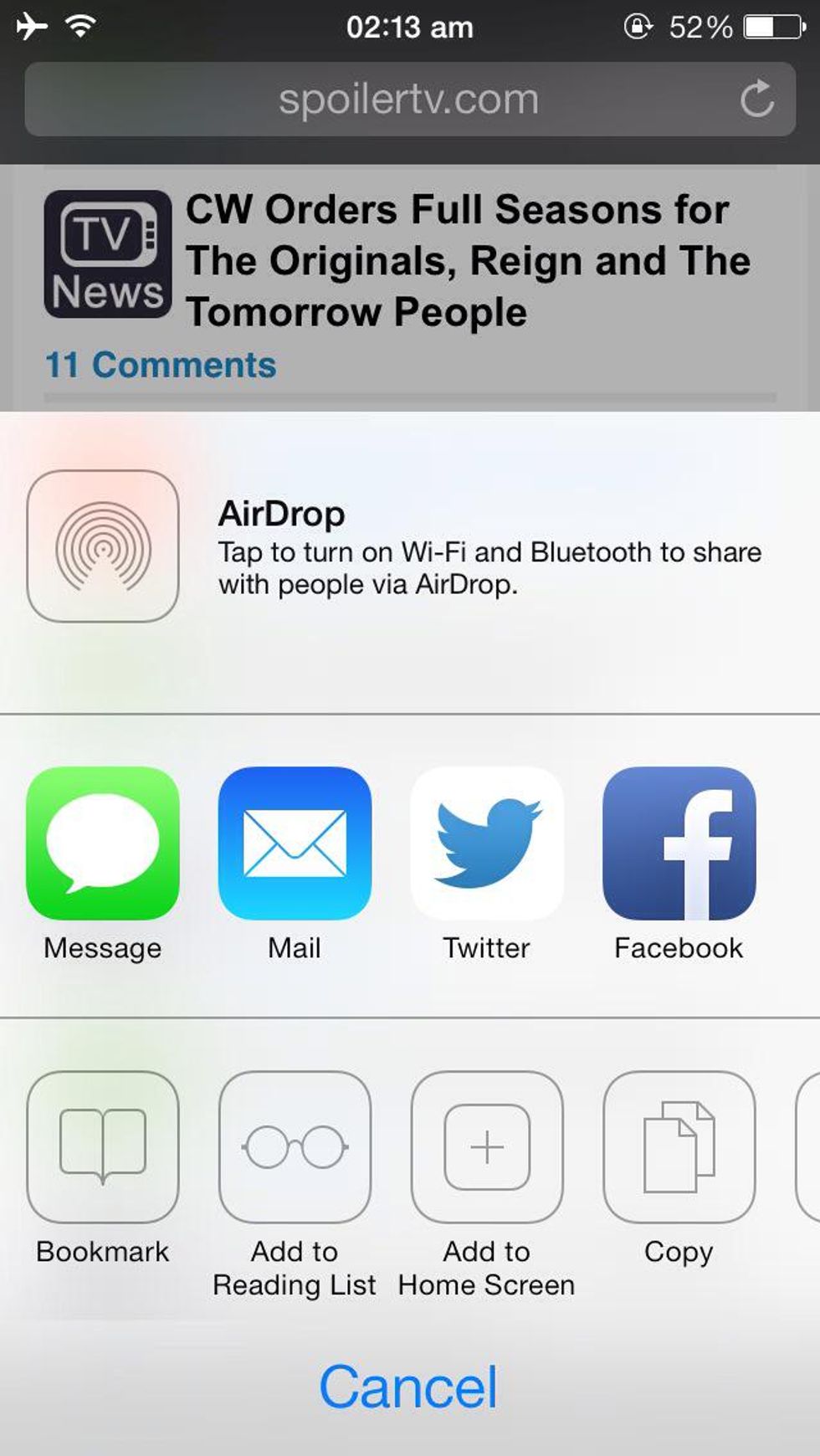Various options will pop up. Click on Add to Home Screen (For Eg : I want spoilertv.com as an icon,I typed in that address)