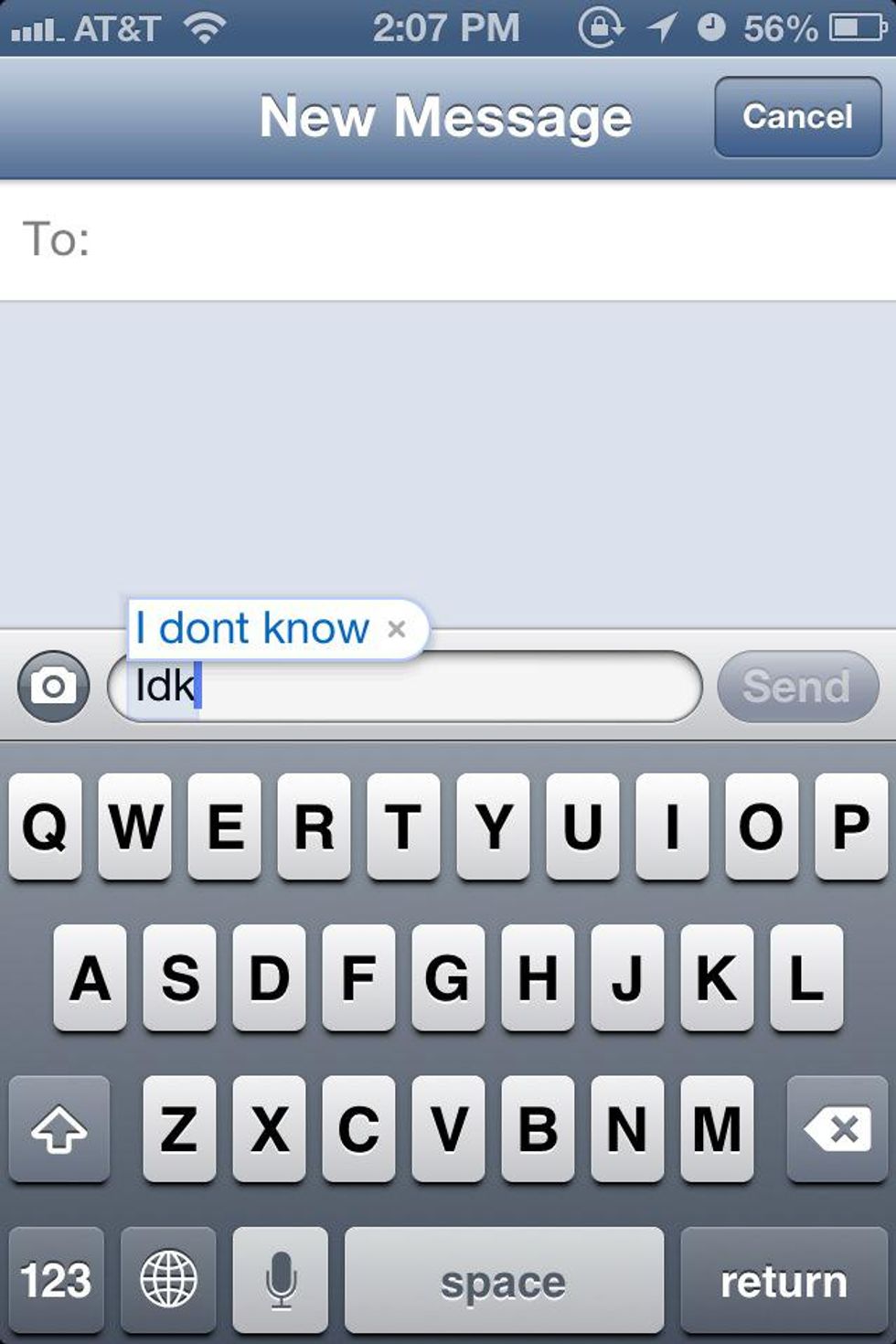 What you'll do is write the phrase you will want changed once the short cut enables. i.e. I used 'idk' to show how to create one. The shortcut is what it'll be changed too.