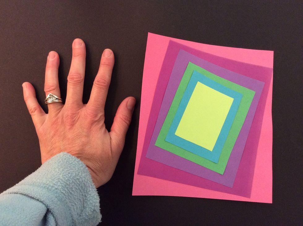 I'll choose a larger paper in another color and measure one pinkie width away from my first shape.
