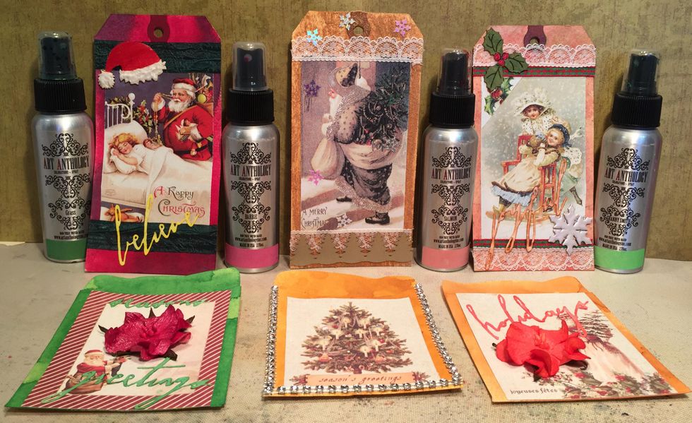 Now for the library pockets the tags go in.  I sprayed one of each with Granny Smith, Rustic, and Timeless.