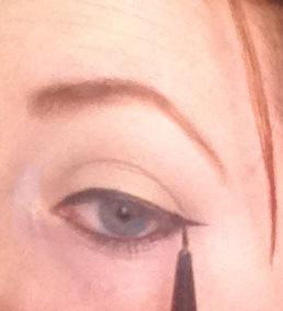 The wing up to you how high u go or long u go I like a more subtle wing and in the corner I've used a straight edge piece of card to get that wing. It's a tricky thing to do on self so practice x