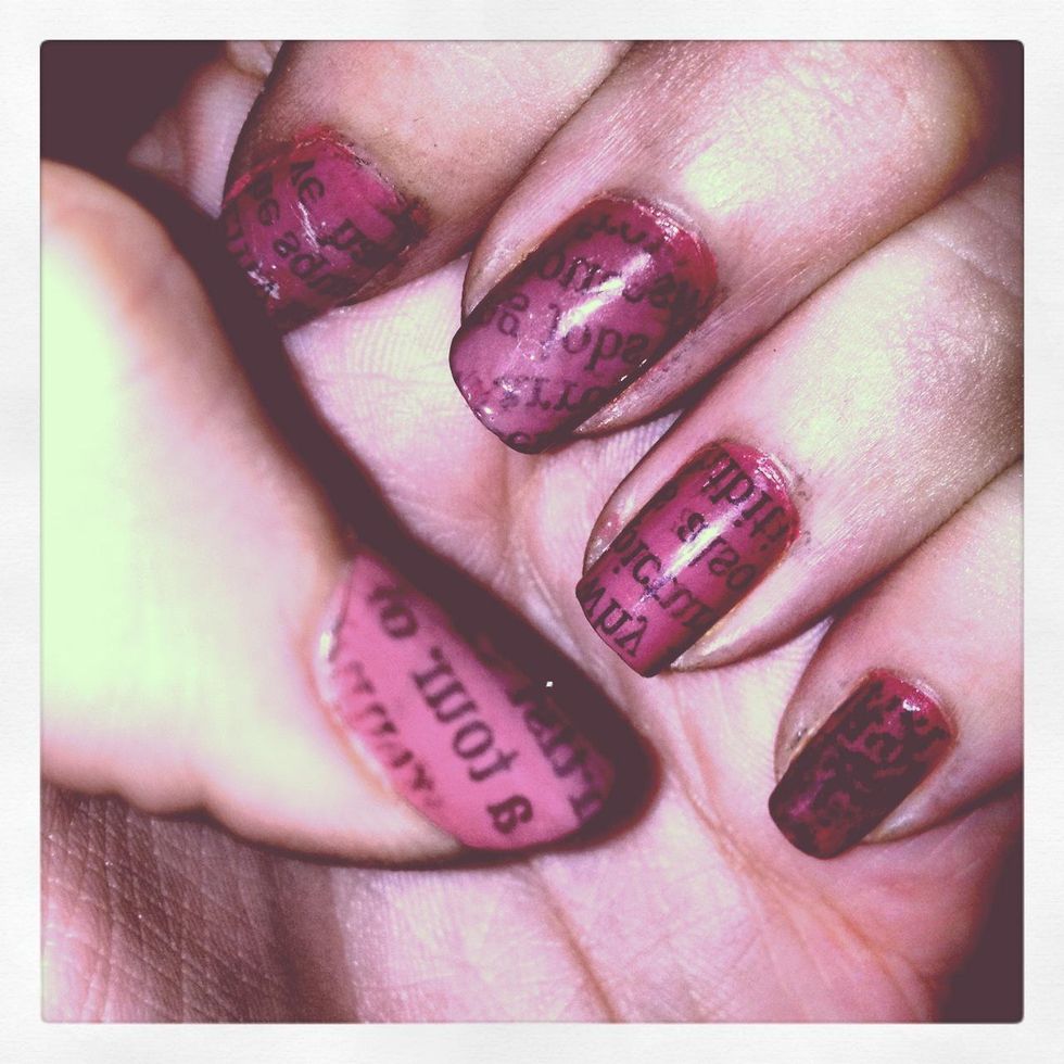 Next, cut up 10 pieces of newspaper that you want to transfer onto your nails. I recommend only using black text or barcodes for the boldest effect.