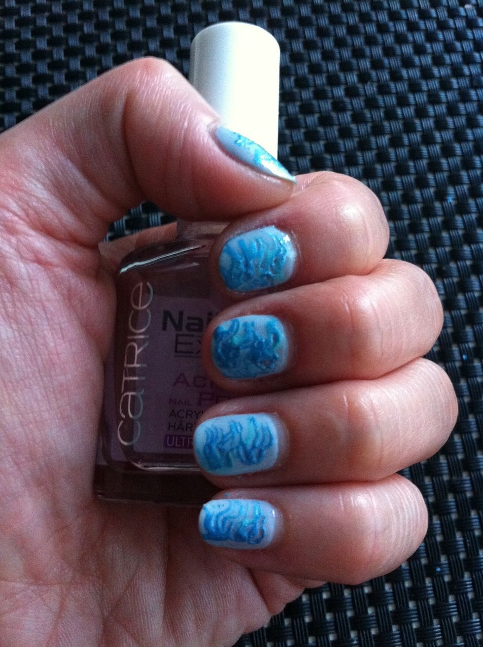 Use your dotter to draw wavy lines over your whole nail. Start from the blobs and draw lines to the other side of your nail.