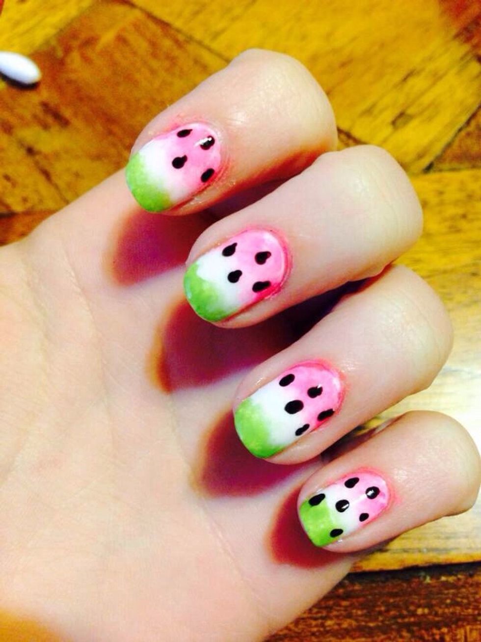 Start your pink, white, green ombré on a makeup sponge