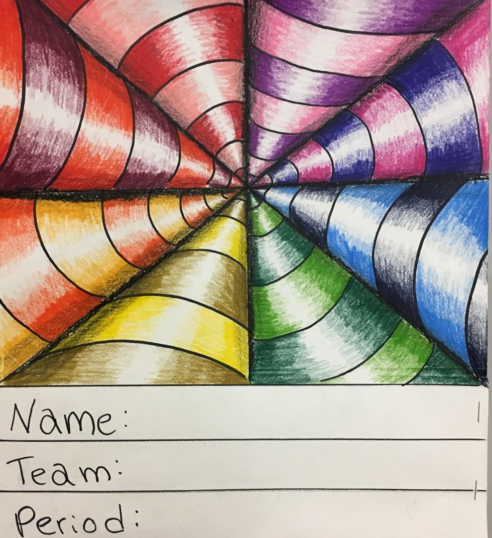 Use a black colored pencil to darken the horizontal, vertical and diagonal lines. Add some shading to each "pie" piece.