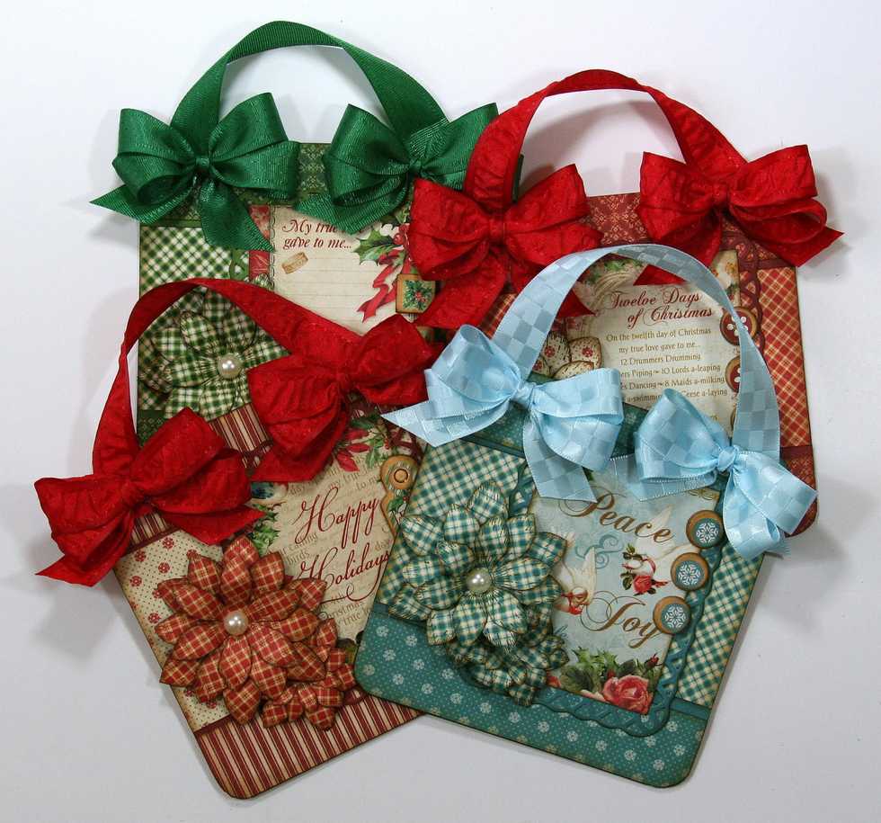 Cover the backs with patterned papers from The Twelve Days of Christmas. Take the time to coordinate with what you'll add to the front.