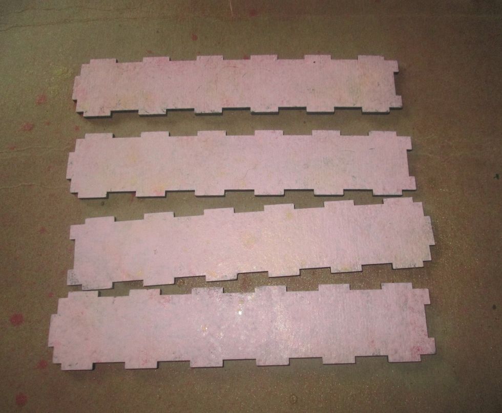 After laying all of the pieces into place, I added a dot of glue onto the slats that will make contact with a flat surface.