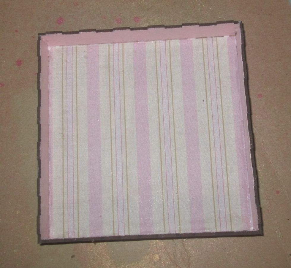 After trimming off the excess fabric, I chose a coordinating shade of Distress Paint to add color to the inner sides and outside of the shadow box.