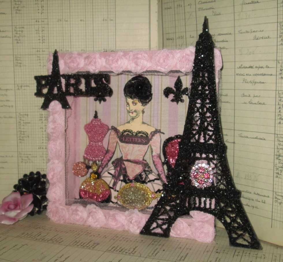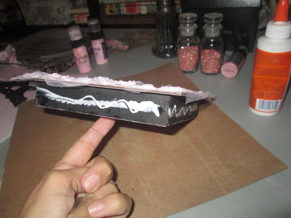 Then I added some more fabric to the back of the box and black trim for the outer part of the frame. I always like to have the back of a project as pretty as the front.