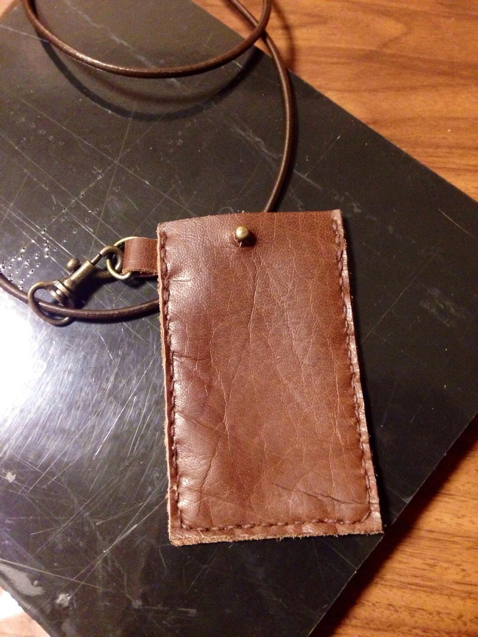 repeatedly 2 pieces of leather,and keep by tapepunch sew pointsmake tag partstoolsapply the wax to the threadstart sewingsew from both sidescomplete