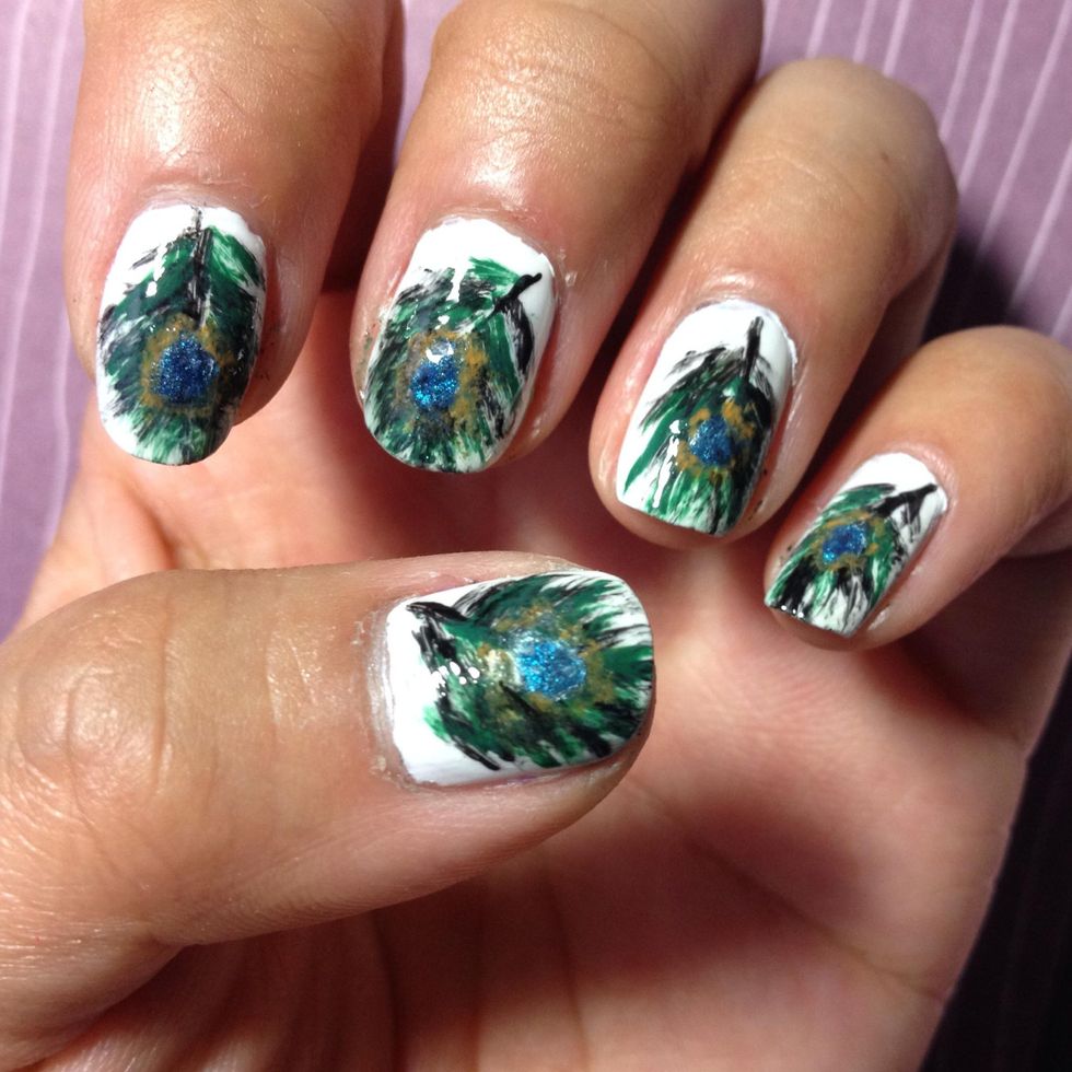 Do the same with the green polish. A dry brush creates the feathering effect.