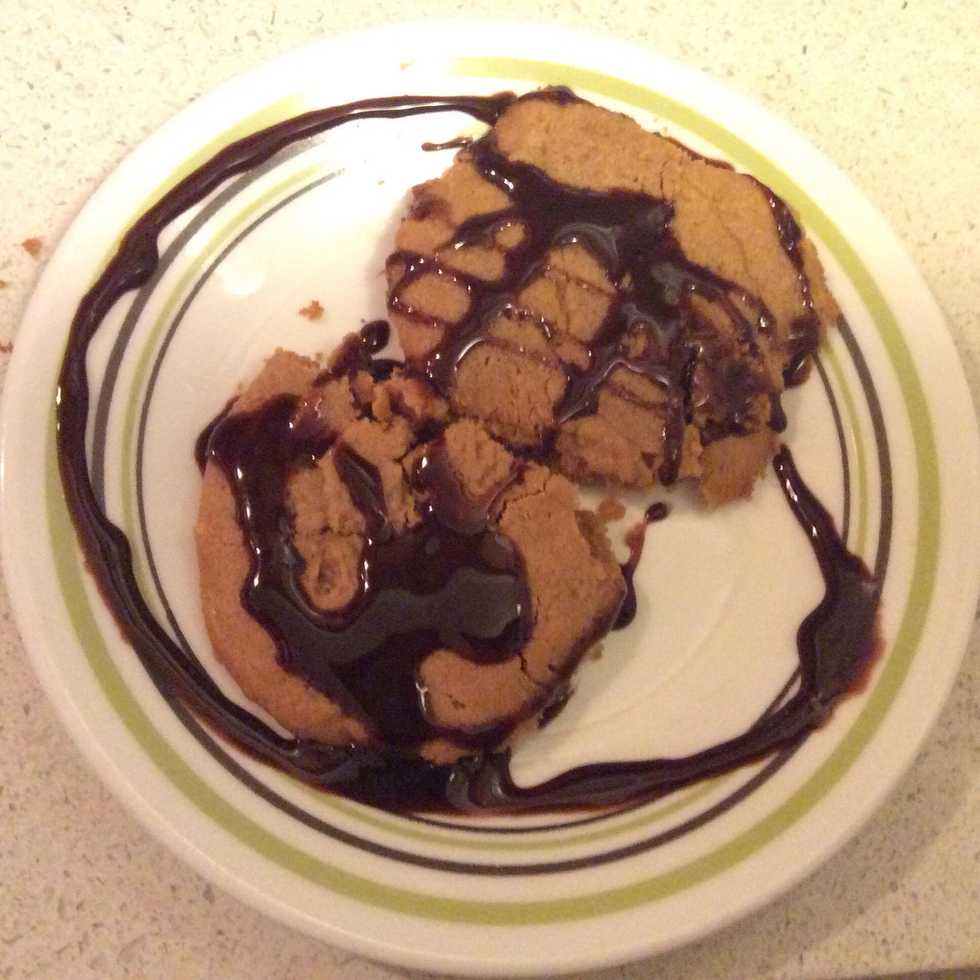 Now, remove it from the pan and set it on a plate and drizzle the chocolate syrup in any kind of design on your cookie.