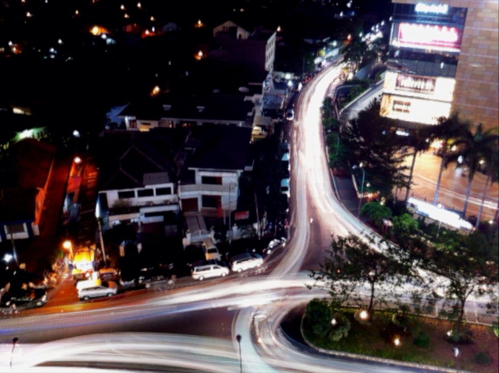 Top Camera app is recomended application to create nightshoot photo with lighttrails effect, because have slow shutter mode and lighttrails mode. If you don't have this application,you can download it