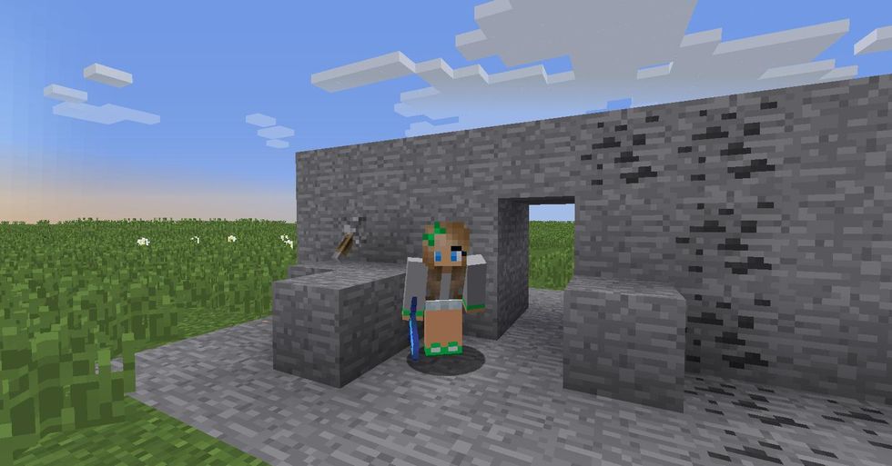 Decorate around the piston door as you wish. I chose to use a mine-like theme and made the surroundings look natural.