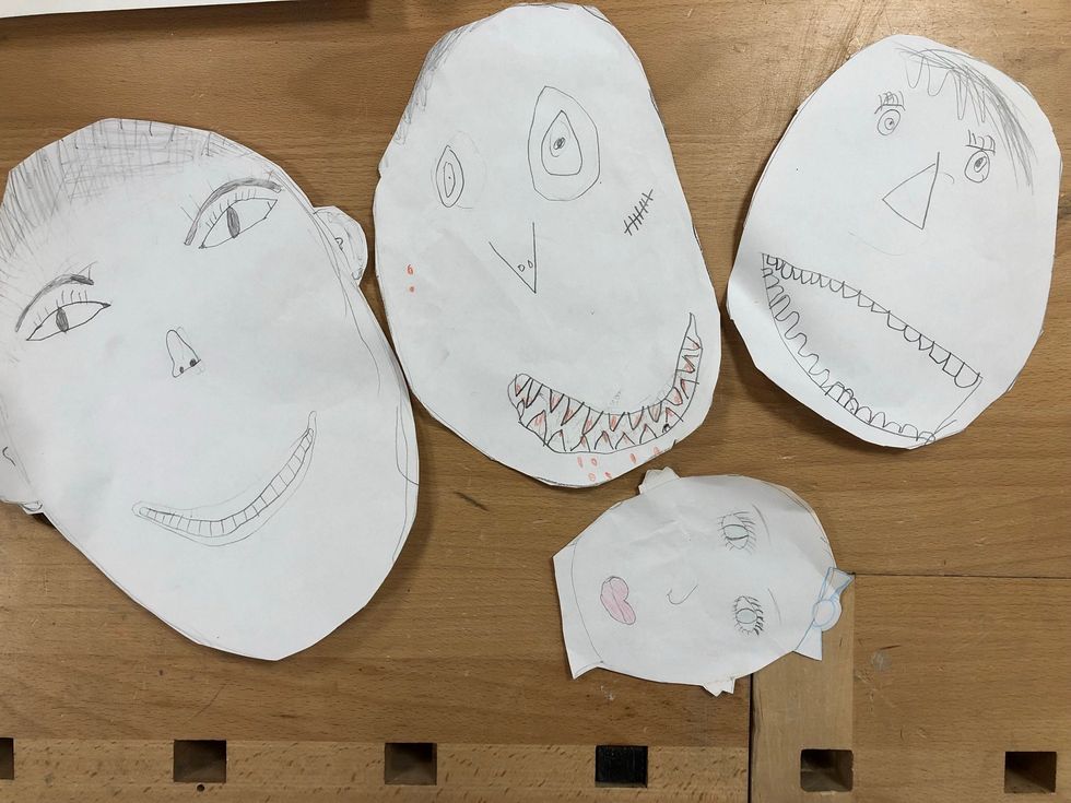 Skissa ögon, näsa och mun vid sidan om
