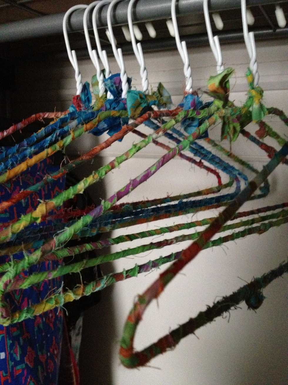 Tie the end of a strip to the top of the hanger leaving a little coming out