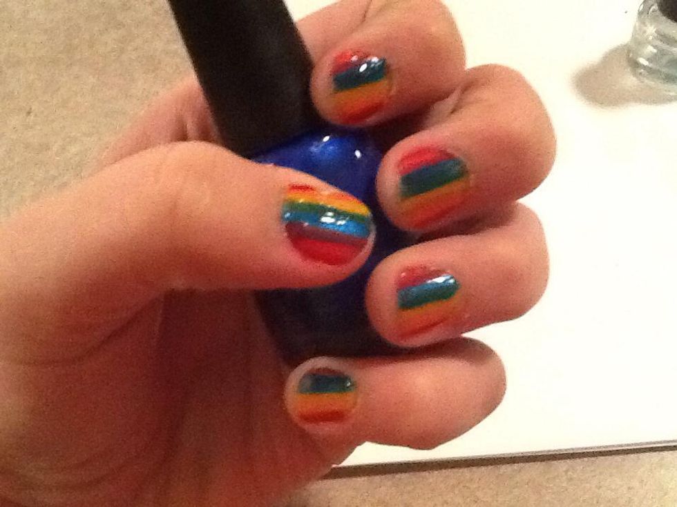 Next make a purple line next to the blue line. Your pinkie finger will probably have no more room for the pink.