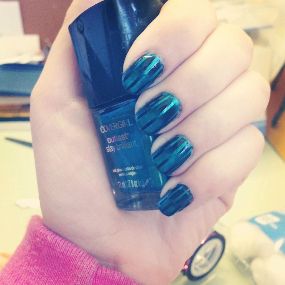 Paint the lighter color on your nails. I did two coats to get the opacity I wanted. Let it dry completely. This color is Covergirls "Constant Carribean", for anyone wondering.