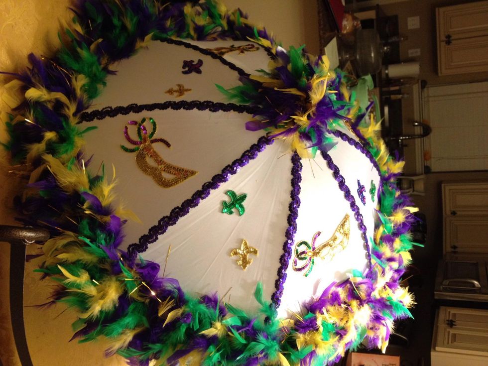 Fabric glue for the appliqué and trim, hot glue for the boaThe piece of boa that was cut add it to the top. After you are done let it dry for about a day. The umbrella might not close this one didn't.