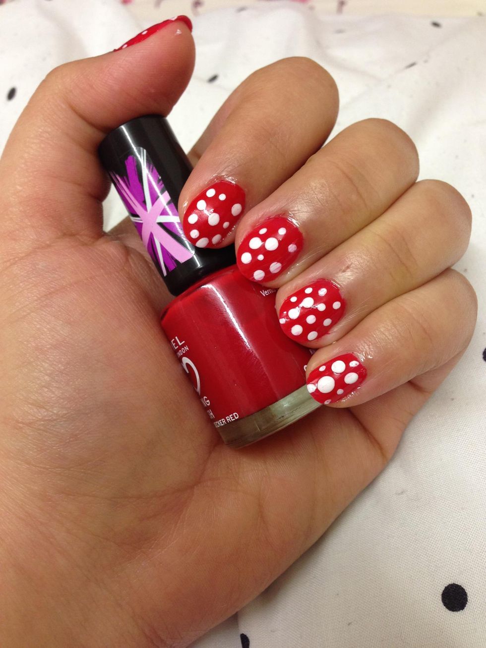 Then apply the red shade, i am using double decker red by rimmel