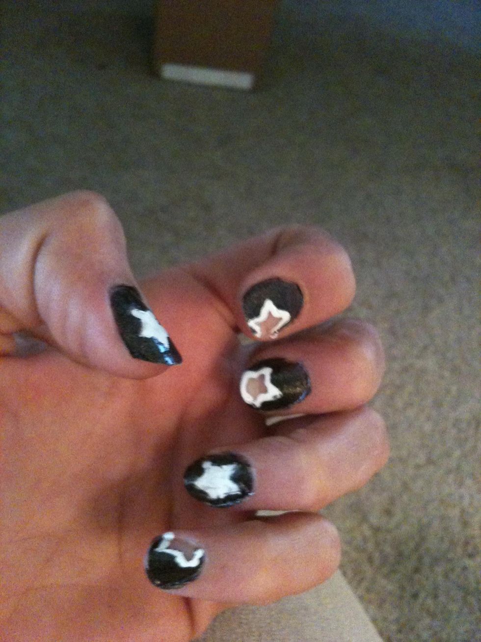 carefully outline star with second color of choice ( I used a white by China Glaze) I filled in the accent and thumb nail