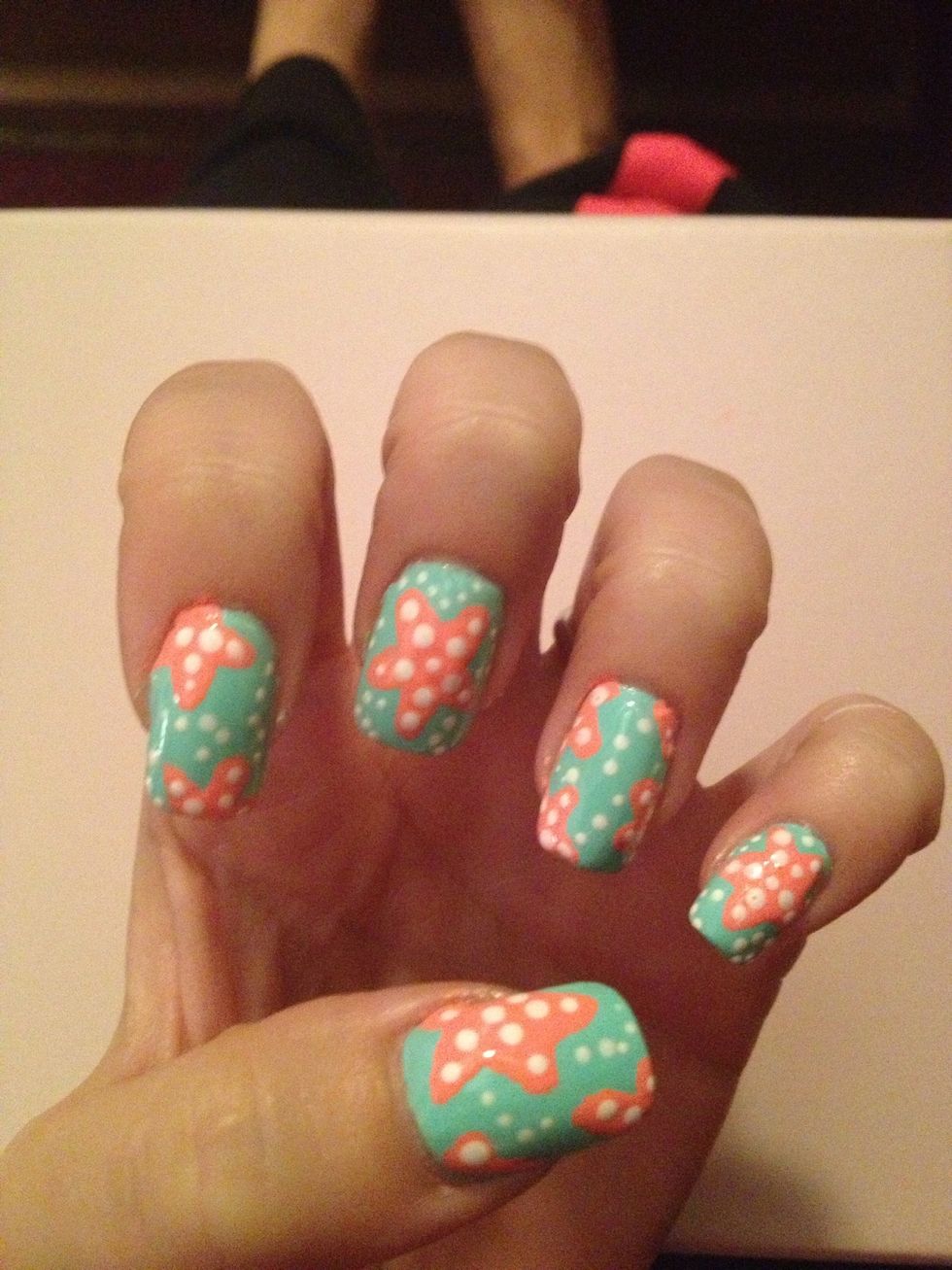 Step 4: You can repeat the pattern on all nails or do random placement of starfish as shown above.