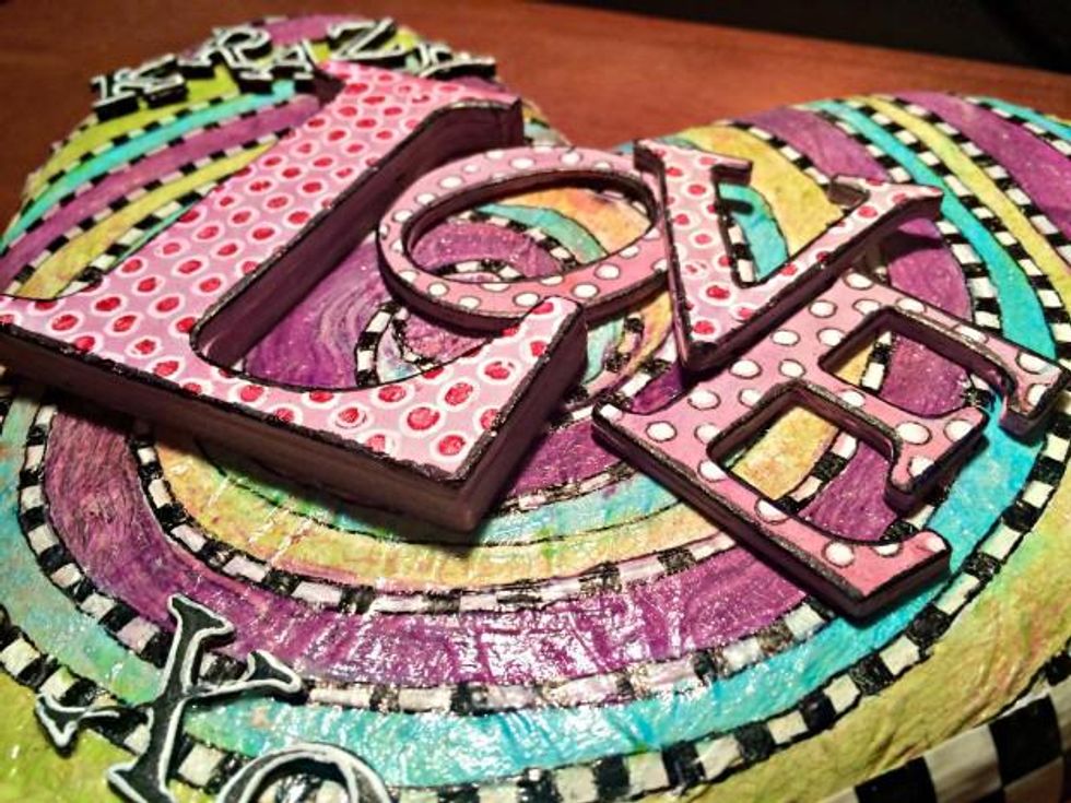 For this project I cut a heart out of a square piece of styrofoam. I paper mache’d it with newspaper and paper towel. Let this dry overnight. Once dry I covered the heart in Art Anthology Gesso.