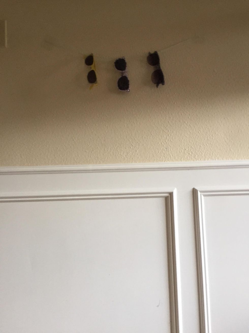 SunglassesStringTapeScissorsCut string about 12 in.Add tape to each sideHang on wallAdd glasses!! Then your done!! I hope you liked it!!