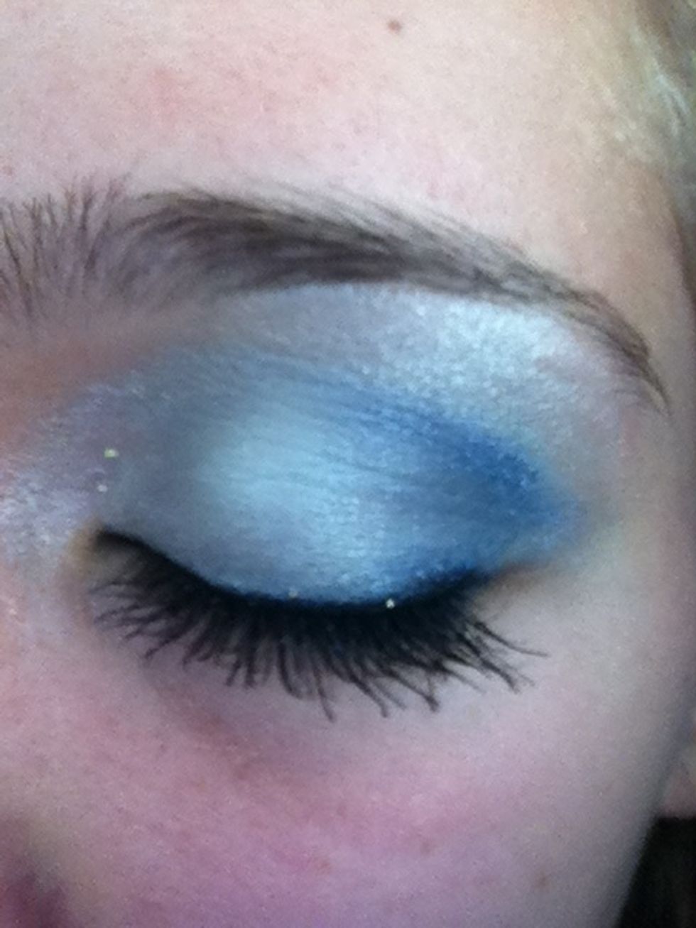 Going back with the dark blue eye shadow I used my eyeshadow brush and gently lined my bottom eye connecting it with the top eye lid.