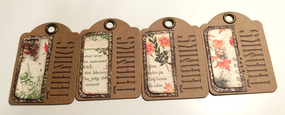 To start, you'll need to pull out 8 tags from the Kraft "Thanks" ATC Package.