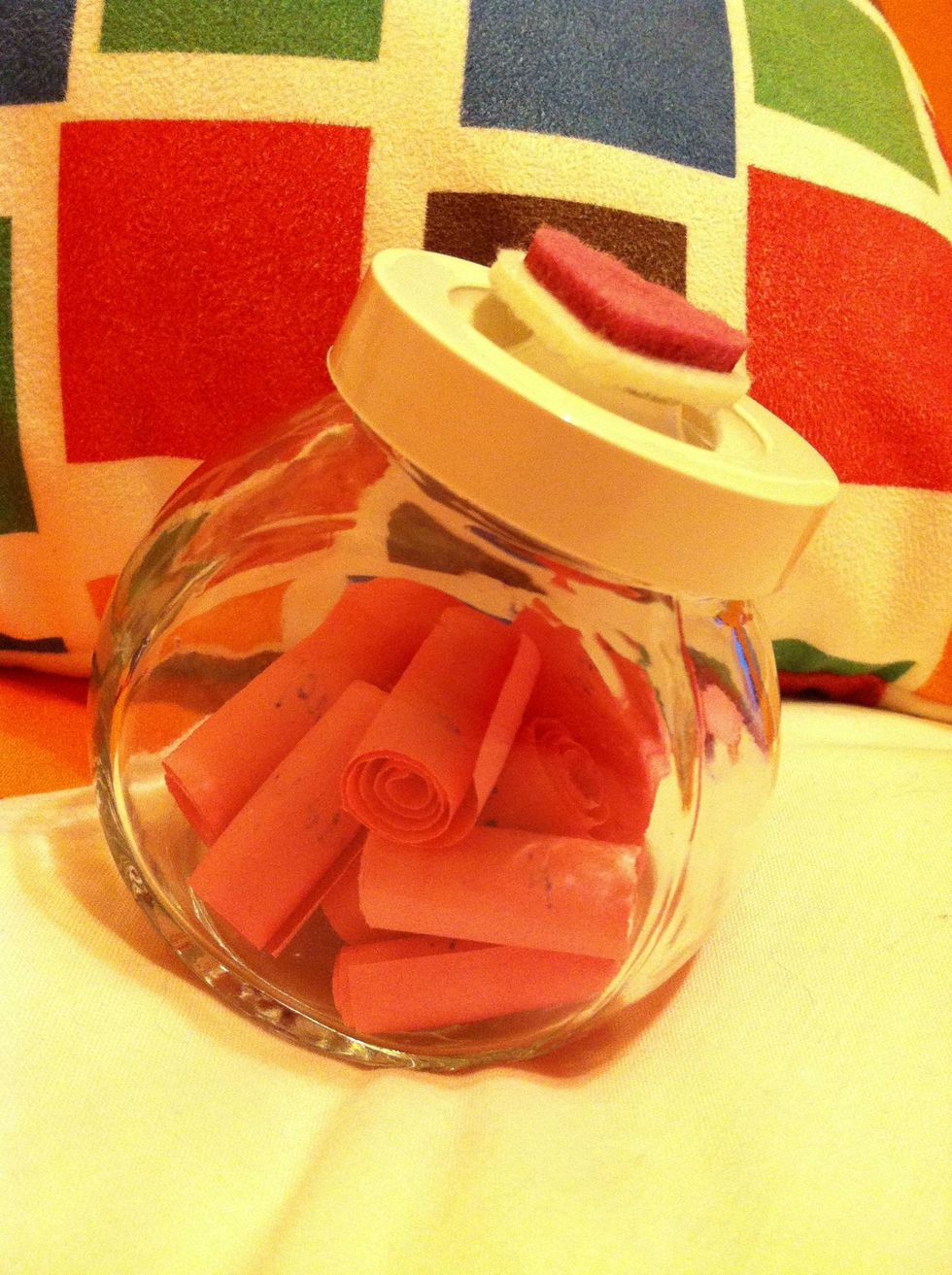 Find some thin paper of any color, my parents used pink, and cut it at the desired width. Make enough to fill the jar when rolled up.