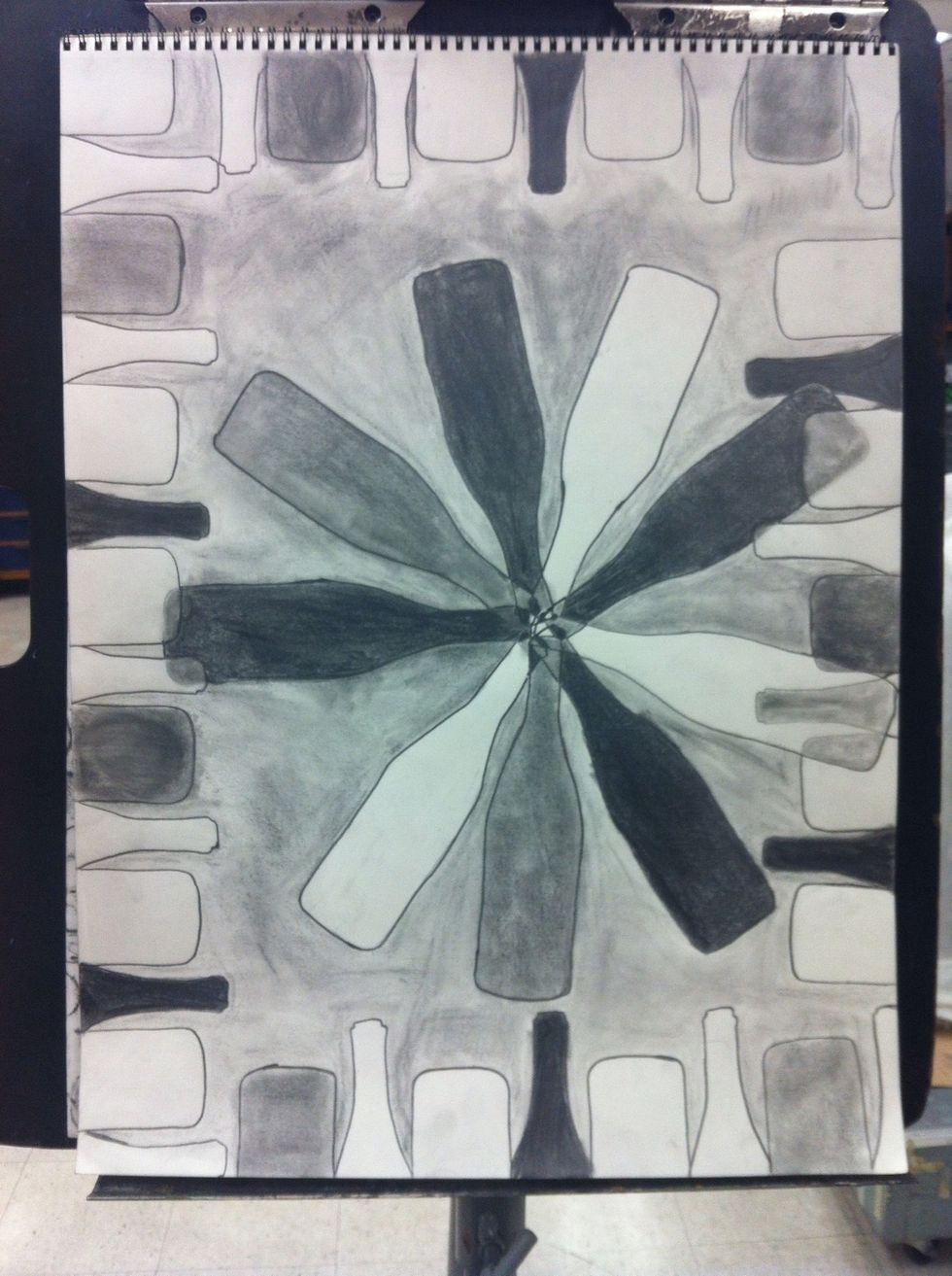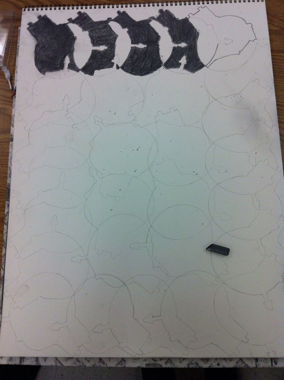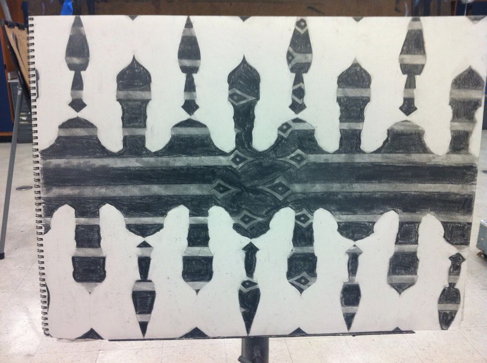 Continue to define your pattern with different shades of gray. Blend the graphite to create a uniform gray.