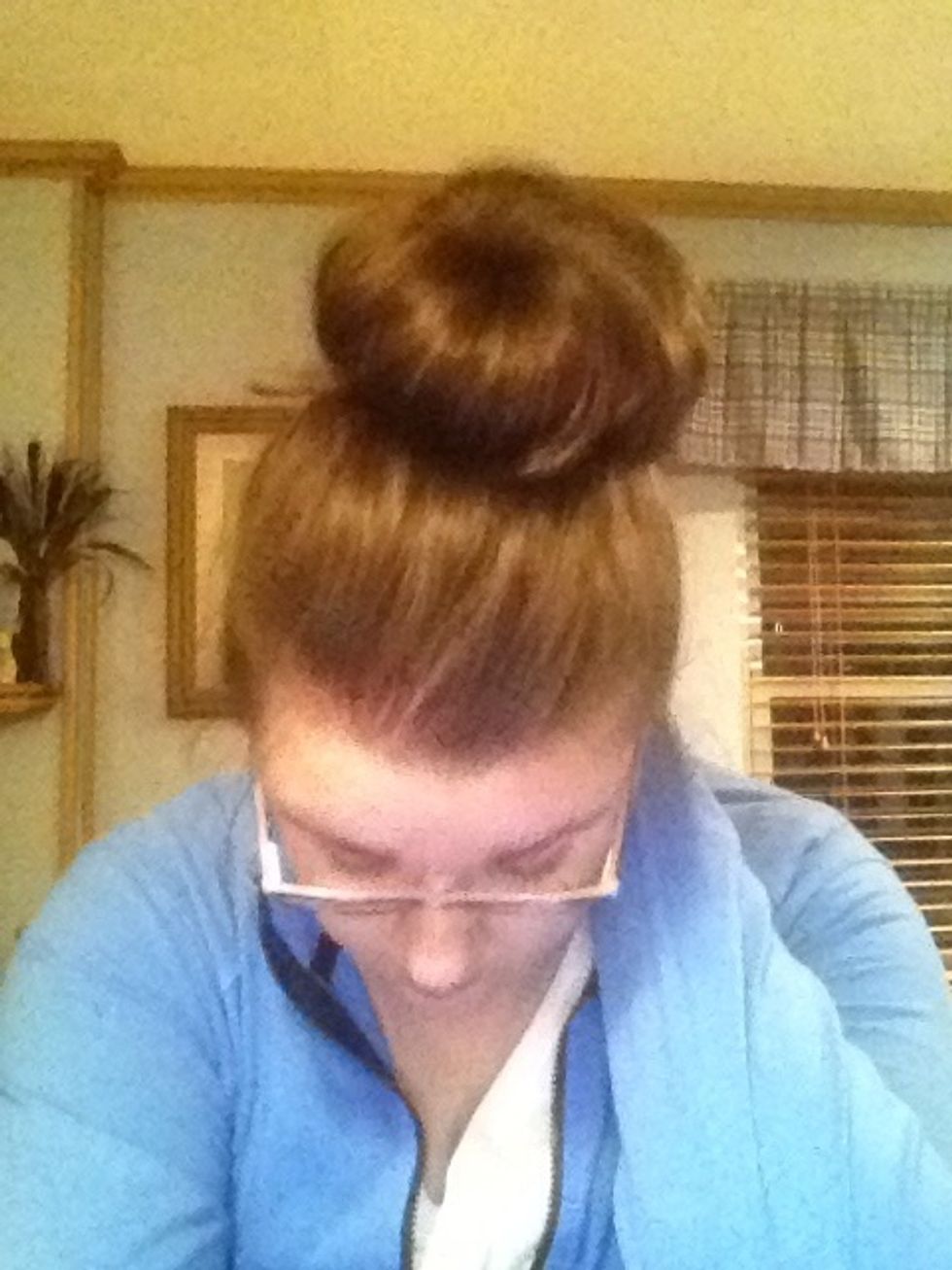 If you haven't done so already, now is the time to put your hair in a ponytail. Remember that where you anchor the ponytail is where the middle of the bun will be.