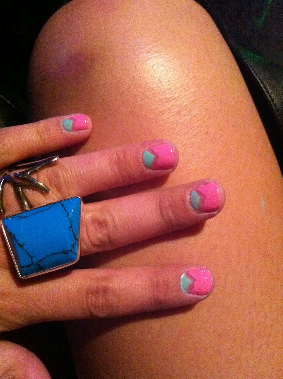 Stick the cut tape to your nail in which ever direction you please, leaving open nail to apply your first color on.