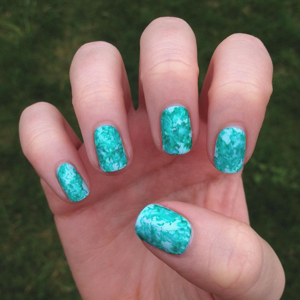 Wet a small paintbrush and lightly dab the paint around your nail until you get your desired effect.
